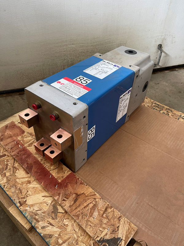 RoMan Manufacturing 85kVA fixture type water-cooled transformer [ Model #: F48685B1SELX ] IN-STOCK at Weld Systems Integrators. RoMan AC fixture type water-cooled transformers are ideal for press, seam, rocker arm, cross wire, and other welding applications. Available in various primary voltages, frequencies, and secondary voltages, both the size and capabilities of our Fixture Type units can also be designed to meet specific application requirements.